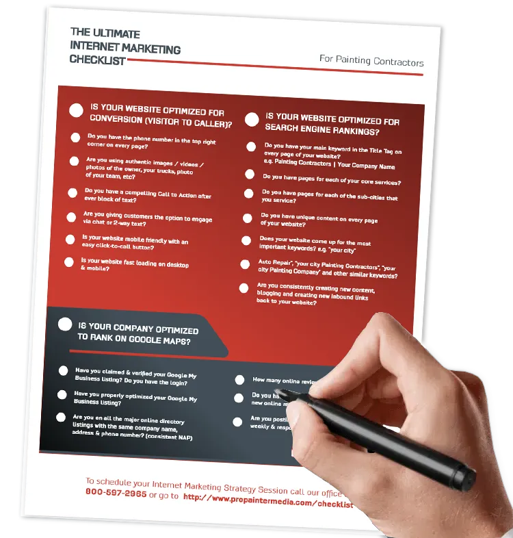 How to get your Internet Marketing Right for your Painting Business. This checklist will help you identify what is missing from your current strategy and what you must focus on to take your company to the next level.